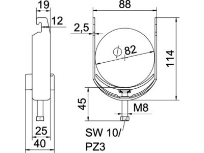OBO BETTERMANN Třmenová příchytka, 1-nás, 76-82mm, Ocel, St, žárově zinkováno ponorem, DIN EN ISO 1461 typ BS-U1-K-82 FT