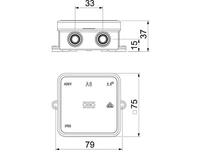 Stupeň krytí IP55, jmenovité napětí 690 V, jmenovitý průřez 2,5 mm², 7 vývodů pro kabely o průměru 5–14 mm.