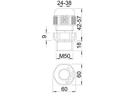 Kabelová vývodka s metrickým připojovacím závitem kloboučkového tvaru, pro odbočné krabice, pouzdra, rozvodné skříně v soukromé i průmyslové oblasti. S odlehčením tahu a integrovaným těsnicím břitem, zkoušena podle normy EN 62444. Stupeň krytí IP68. Lze použít od –20 °C do +65 °C.
