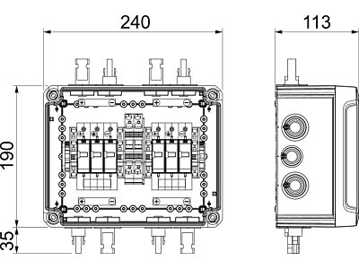 OBO BETTERMANN Systémové řešení typu 2 pro FV s MC4 pro střídače s 2 MPP trackerem, 1000V DC typ PVG-C1000S110