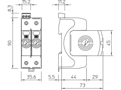 - Způsob montáže DIN lišta 35 mm