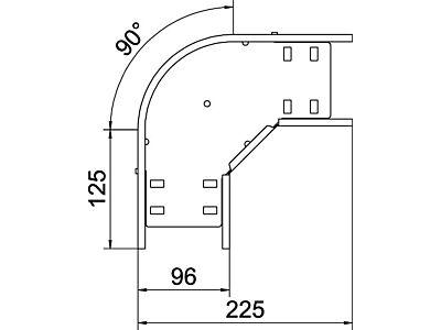 Oblouk 90° pro vytvoření vodorovné odbočky, tvarový díl pro naklapávací i šroubovací kabelové žlaby, výška bočnice 85 mm. Bezšroubová montáž pomocí dvojitých svorek nebo spojení pomocí šroubů s plochou kulovou hlavou FRS a matic kombi M6. Lze použít v interiéru i ve venkovním prostředí. Upevňovací materiál je nutné objednat samostatně.