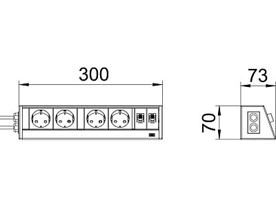 OBO BETTERMANN Stolní zásuvkový box, (2+2)x230V 2xRJ45, hliníková Hliník, Alu typ DB-0A3 D22SR2K