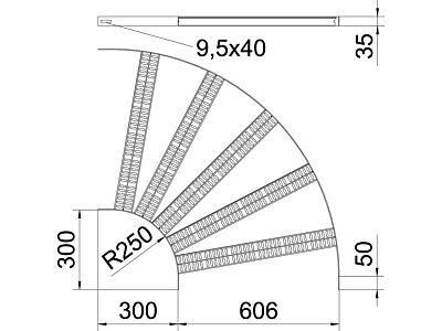 OBO BETTERMANN Oblouk 90°, pro kabelový žebřík SL, B606mm, Nerez, materiál 1.4571 A4, 1.4571 bez povrch. úpravy, dodatečně ošetřeno typ SLZB L 90 600 A4