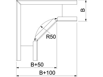 OBO BETTERMANN Oblouk 90°, vodorovný, s úhlovou spojkou, 60x50, Ocel, St, žárově zinkováno ponorem, DIN EN ISO 1461 typ RB 90 605 FT