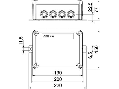 OBO BETTERMANN Odbočné krabice, T160 s násuvnými těsnicími průchodkami, 2 držák pojistek typ T160ED 10A2F