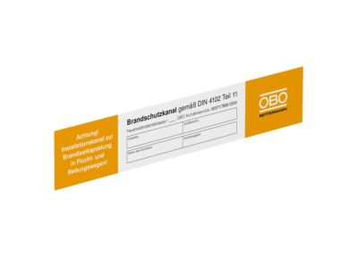 Samolepicí identifikační štítek pro popis kabelového kanálu jako instalačního kanálu v souladu se schválením podle normy DIN 4102 část 11.