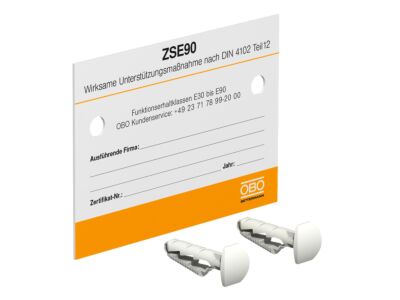 Identifikační štítek k vlastnímu popisování vodě odolným a neblednoucím fixem, vhodný pro odlehčení tahu ZSE90. Pro označení v souladu se schválením dle normy DIN 4102 část 12. Včetně 2 hmoždinek.
