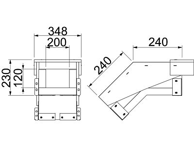 Svislý oblouk, klesající, pro protipožární kanál PYROLINE® Con S EI90 typu PLCS D091220 z odlehčeného betonu se skelnými vlákny odolného proti vodě a mrazu pro zhotovení svislé změny směru (45°) v trase kanálu. Smontované spojovací kování zajišťuje rychlou montáž na místě, volně položená víka zaručují rychlou revizi a dodatečné osazování.