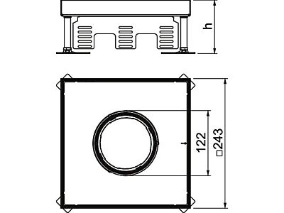 Nivelovatelná čtvercová kazeta pro tubus, jmenovitá velikost 9 k vestavbě instalačních přístrojů do kanálových systémů nebo dvojitých a dutých podlah se suchou nebo mokrou údržbou v interiéru. Vhodná jen pro hladké podlahové krytiny.