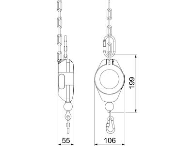 Polohovač pro variabilní nastavení výšky napájecí jednotky VH, nosnost 0,5–6,0 kg, maximální vytažení lana 1,5 m.