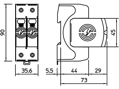 • Modulární vyjímatelný svodič s dynamickým odpojovacím zařízením a optickou signalizací stavu