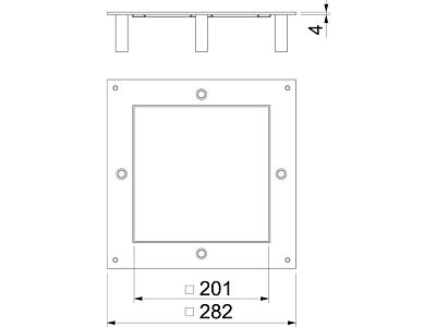 Montážní víko pro vysoká zatížení pro podlahovou krabici typu UZD250 je vhodné pro vestavbu čtvercové kazety pro vysoká zatížení jmenovité velikosti 4. Montážní otvor je prohlouben o 3 mm. Díky tomu ho lze dodatečně uzavřít plným víkem.