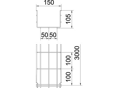 Mřížový žlab s tvarovanou integrovanou spojkou s výškou bočnice 105 mm.