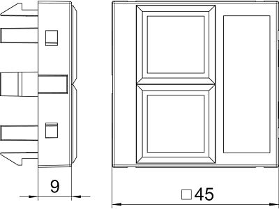 Nosič datové techniky s rovným vývodem, bez uzavírací krytky, k uchycení dvou modulárních zásuvek datové techniky se zdířkou RJ-45. Upevnění naklapnutím je vhodné pro vodorovnou i svislou montáž do systémového prostředí. Typ LE má speciální modulární úchyt a je dimenzován pro nepřímé upevnění datových modulárních zásuvek v montážním otvoru.