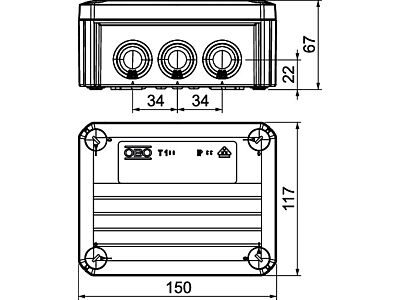 Odbočná krabice k propojení kabelů a vedení v interiéru a chráněném venkovním prostoru. Obdélníkové provedení s násuvnými těsnicími průchodkami po stranách a otvory k vyražení ve dně. Vhodná pro montáž na stěnu či strop a k montáži na montážní plechy. S možností vnitřního upevnění a montáže pomocí rohových nálitků. Víko s rychlouzávěrem, možnost zaplombování. Vyrobeno z bezhalogenových materiálů stabilizovaných proti ultrafialovému záření.