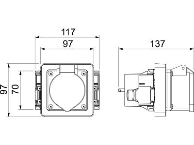 Přístrojová krabice pro vestavbu 3- nebo 5pól. zásuvky CEE 16 A nebo 32 A.