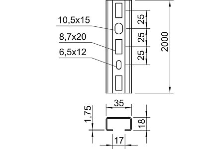 Střední profilová lišta C k ukládání kabelů, ve spojení s třmenovými příchytkami s patkou s hlavou T. Lze použít také jako konstrukci k zavěšení kabelových nosných systémů.