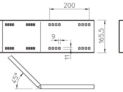 Úhlová spojka 45°, vodorovná, pro kabelové žlaby a žebříky pro velká rozpětí s výškou bočnice 160 mm.