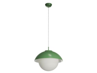 Olivově zelené závěsné žárovkové svítidlo ON/OFF s dekorativním límcem a skleněné stínidlo TRIPLEX OPAL. Textilní kabelový závěs s vnitřním nosným lankem o délce 100 cm.