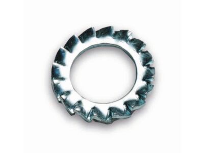 Vroubkovaná pojistná podložka podle DIN 6798, tvar A, vně vroubkovaná, vyrobená z oceli a pozinkovaná. Provedení: pro šrouby: M8; vnitřní Ø: 8,4 mm; vnější Ø: 14 mm; PU: 100.