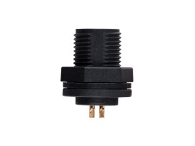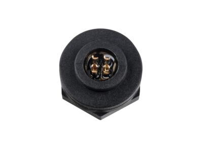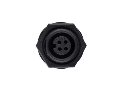 Panelová zásuvka bez převlečné matice, IP67, pozlacené kontakty, pájecí - vnější montáž, M12, 4piny. Konektor lze propojit s 4-pinovými konektory M12 - vidlicemi s maticí. Max. 110V/10A. Délka cca 23mm, průměr 18mm.