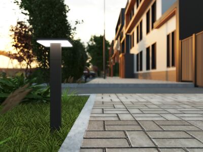 Zahradní sloupkové LED svítidlo s hranatým designem a pohybovým PIR senzorem.