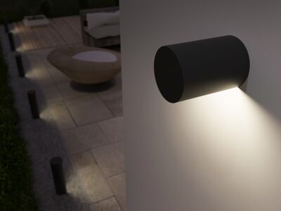 Nástěnné zahradní LED svítidlo vyrobené převážně z tlakově litého hliníku.