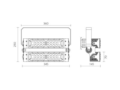 2 moduly - úhel vyzařováni lze dle potřeby manuálně nastavit (viz ilustrační obrázek)