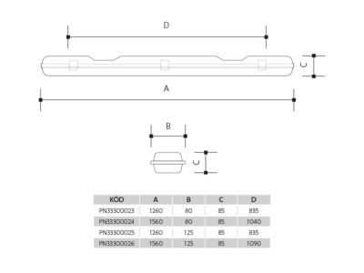 Velmi vysoká světelná účinnost 140lm/W Základna a kryt svítidla jsou z polykarbonátu, kryt svítidla je přichycen polykarbonátovými klipy