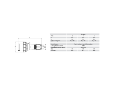 vidlice 5-pólová 63A / 400V, 6h, IP67, černá MIDNIGHT