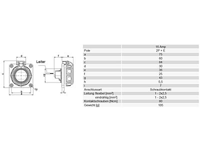 Zásuvka 16A/230V 3-pól. IP68 vest.