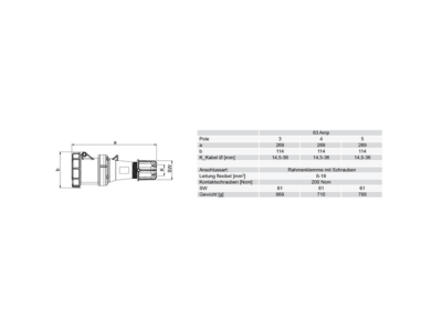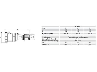 spojka 5-pólová, 63A / 400V, 6h, IP67, černá MIDNIGHT