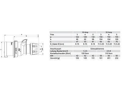 - Napětí podle ČSN EN 60309-2 500 V (50 Hz 60) černá