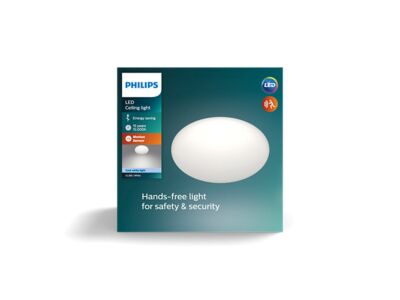 Kruhové stropní LED svítidlo o průměru 26 cm s vestavným senzorem pohybu šetří energii a dodává světlo jen, když ho potřebujete. Mikrovlnné čidlo má široký detekční úhel a reaguje zapnutím světla po detekci pohybu. Automaticky po chvíli světlo zase vypne. Svit s okamžitým startem a 100 % výkonem zajišťuje integrovaný úsporný LED zdroj o maximálním příkonu 1 x 12 W se svítivostí 1150 lm v jasném neutrálním bílém odstínu s teplotou chromatičnosti 4000K a s technologií EyeComfort, která šetří vaše oči. Zdroj je součástí svítidla bez možnosti výměny a jeho životnost je až 15.000 hodin. Philips poskytuje na toto svítidlo prodlouženou záruku 5 let. Pro výrobu byl použit kov s bílou povrchovou úpravou a kvalitní odolný mléčný plast, který rozptyluje rovnoměrně světlo po místnosti. Instalace je velmi snadná a je možná na strop nebo na stěnu. Krytí IP20 označuje vhodnost použití v interiéru bez zvýšené vlhkosti.