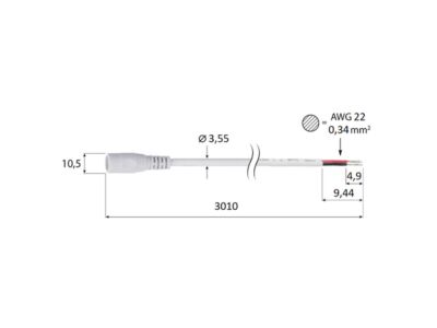 Power konektor – zásuvka, volný konec (AWG 22/0,34 mm²), bílý, max. 3 A, délka 3 m