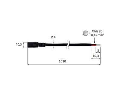 Power konektor – zásuvka, volný konec (AWG 20/0,42 mm²), černý, max. 5 A, délka 1 m