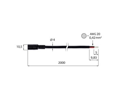 Power konektor – zásuvka, volný konec (AWG 20/0,42 mm²), černý, max. 5 A, délka 2 m