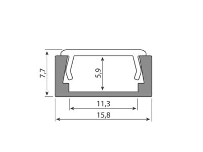 Přisazený hliníkový profil pro LED pásky, rozměry průřezu cca 16x8 mm. Součástí je mléčný difuzor, který lze do profilu nacvaknout. Tento profil je určen pro krytí a chlazení LED pásků do šíře 11 mm. Upevnění k podkladu lze provést pomocí montážních úchytů, vrutů, lepidel. K profilu lze zakoupit úchyty a koncovky.