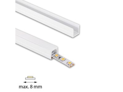 Hliníková základna k přisazenému profilu PW, bez difuzoru. Lze dokoupit mléčný difuzor. Tento profil je určen pro krytí a chlazení LED pásků do šíře až 8 mm a výkonu max. 9,6 W/m. Profil lze upevnit pomocí samostatně prodávaných kovových úchytů, případně jej lze přivrtat nebo přilepit. K profilu s difuzorem lze zakoupit také koncovky.
