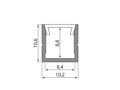 Přisazený hliníkový profil pro LED pásky, rozměry průřezu cca 11x11mm. Součástí je mléčný difuzor, který lze do profilu nacvaknout. Tento profil je určen pro krytí a chlazení LED pásků do šíře 8 mm. Upevnění k podkladu lze provést pomocí montážních úchytů, vrutů, lepidel. K profilu lze zakoupit úchyty a koncovky.