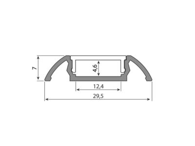 Přisazený hliníkový profil pro LED pásky, rozměry průřezu cca 30x7 mm. Součástí je čirý difuzor, který lze do profilu nasunout. Tento profil je určen pro krytí a chlazení LED pásků do šíře 12 mm. Upevnění k podkladu lze provést pomocí montážních úchytů, vrutů, lepidel. K profilu lze zakoupit úchyty a koncovky.