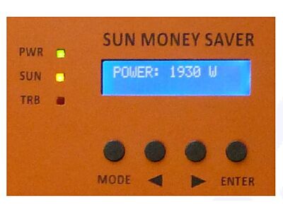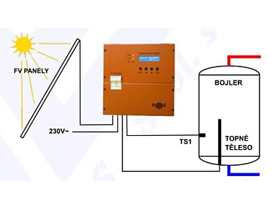MPPT regulátor SUN MONEY SAVER (V-SH-2000) ProWisPower slouží k přímému elektrickému ohřevu vody v bojleru pomocí fotovoltaických panelů až do výkonu 2000W. Fotovoltaické panely jsou zapojeny sériově na vstup regulátoru a pokud je dostatek energie na ohřev vody, regulátor dodává energii do topného tělesa bojleru. Při nedostatku energie přepíná regulátor na připojenou síť, aby se bojler dohřál. Díky MPPT regulaci se využití sluneční energie blíží termálnímu systému ohřevu vody ze slunce (solární kolektory).