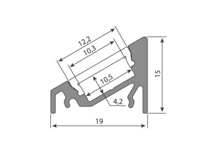 Rohový hliníkový profil pro LED pásky, rozměry průřezu cca 19x15mm. Součástí je mléčný difuzor, který lze do profilu nacvaknout. Tento profil je určen pro krytí a chlazení LED pásků do šíře až 10mm a výkonu max. 19,2W/m. Profil lze upevnit pomocí samostatně prodávaných úchytů, případně jej lze přivrtat nebo přilepit. K profilu lze zakoupit také koncovky. Délka 3m.