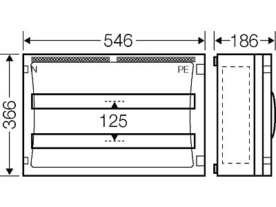Skříň s dvířky pro montáž instalačních rozváděčů do 250 A pro ovládání běžnými osobami v souladu s normou IEC 61439-3. Otevřené stěny skříně pro kombinaci nebo jako samostatné skříně s krycími deskami. Z vysoce kvalitního polykarbonátu s ochrannou izolací. Rychlé spojení skříní pomocí konektorů a integrovaných těsnění. Stěnové průchodky s velkými otvory pro elektrické připojení skříní. Kabelové vývodky přes příruby. Upevnění na stěnu přímo na skříni pomocí vnějších úchytek nebo pomocí montážních lišt. Jističová skříň s 54 modulovými jednotkami k zabudování řadových modulových přístrojů dle DIN 43 880. S PE a N svorkami pro měděné vodiče. N oddělitelný pro různé potenciály. S krycím páskem pro uzavření nevyužitých výřezů v krycí desce pro modulové přístroje a popisovými štítky pro identifikaci proudových obvodů. Průhledná dvířka a plombovatelný dveřní uzávěr s ručním ovládáním. Se sadou krycích desek.