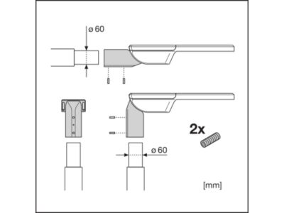 - Vhodné pro horní konec velikosti od / do 60 - 60 mm
