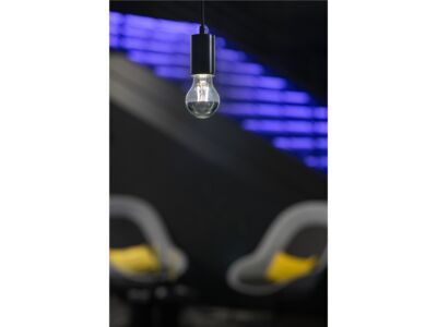 Chromový 7,5 W SLV LED filament světelný zdroj s paticí E27 a tvarem A60 je stmívatelný, nabízí hodnotu CRI 90, 800 lumenů a životnost 15 000 hodin. Tato verze má úhel vyzařování 180° a nabízí teplé bílé světlo s 2700 K.