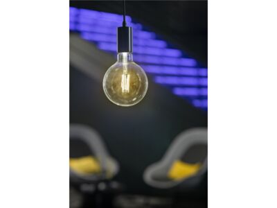 Bíle transparentní 7,5 W SLV SMD LED světelný zdroj s paticí E27 a tvarem G125 je stmívatelný, nabízí hodnotu CRI 90, 800 lumenů a životnost 15 000 hodin. Tato verze má úhel vyzařování 320° a nabízí teplé bílé světlo s 2700 K.