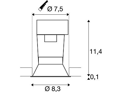 Pevné nízkonapěťové vestavné svítidlo ze série HORN. U svítidla vyrobeného z oceli je zabudovaná žárovka posunutá směrem dozadu. Tato konstrukce vytváří netradiční vzhled.