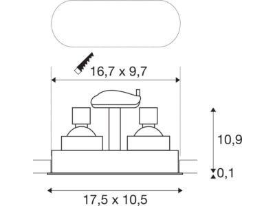 Otočné a výkyvné vysokonapěťové zápustné svítidlo ze série HORN. V případě svítidla vyrobeného z hliníku jsou světelné zdroje instalovány s odsazením dozadu. Výsledkem této konstrukce je speciální vzhled. Elektrické připojení je přímo na 230 V. Dále jsou k dispozici verze s jedním světelným zdrojem a nízkým napětím, příp. v LED verzích.